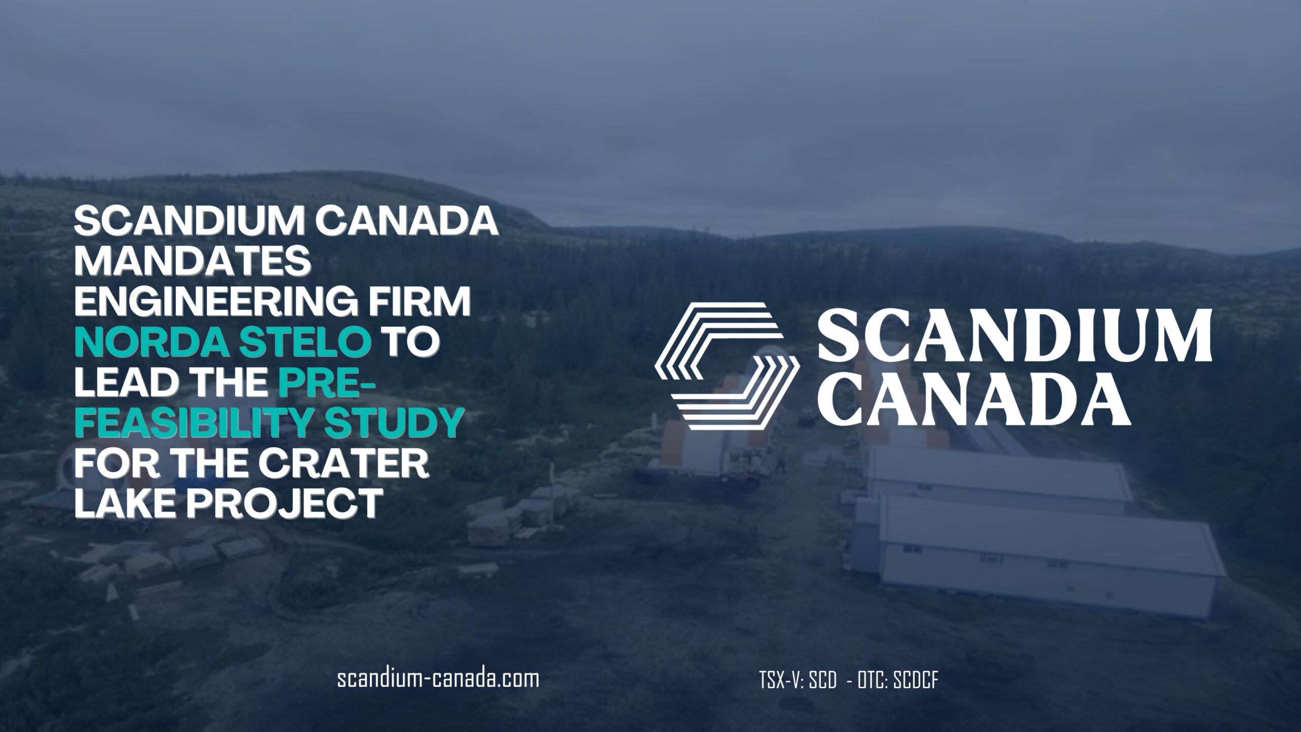MONTREAL, QUEBEC – Scandium Canada Ltd. (TSX-V: SCD) (the “Company”) is pleased to confirm the signing of a service agreement with Québec-based engineering firm Norda Stelo for the completion of the pre-feasibility study (“PFS”) for the Crater Lake project. The timeline for the delivery of the study’s conclusions remains summer 2026, with the final report expected to be released at the end of August 2026.