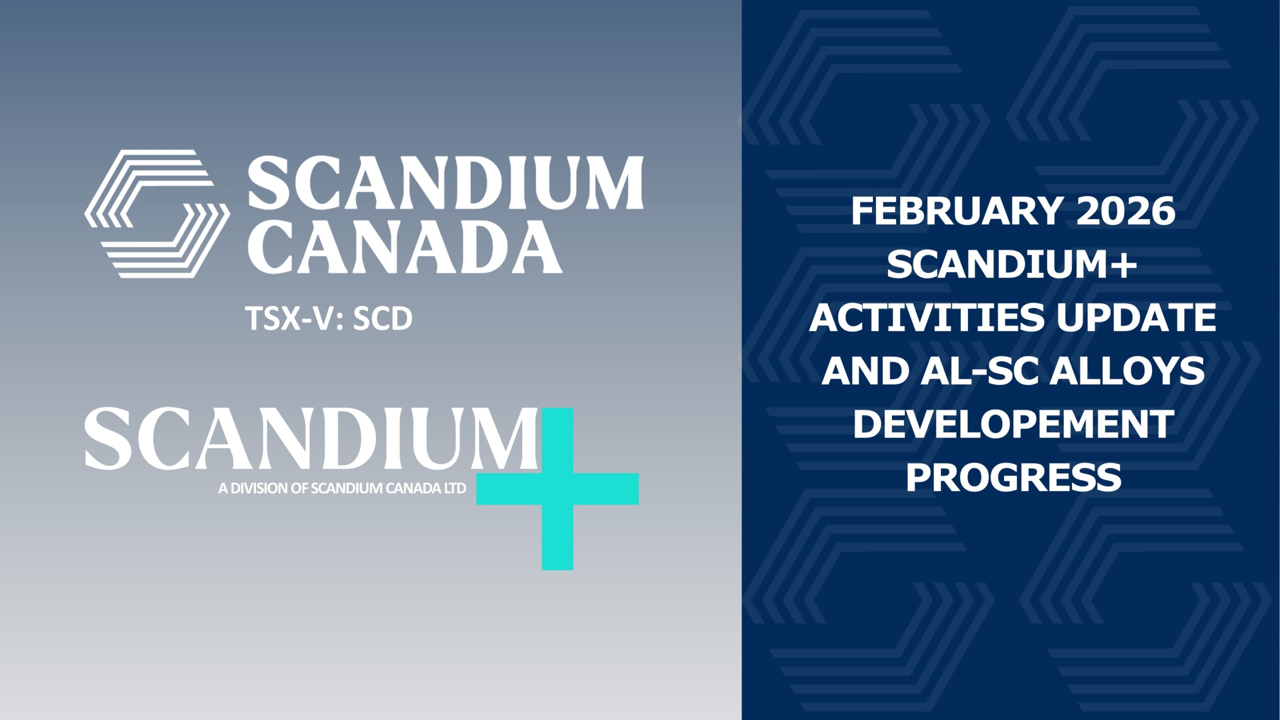 Building on the Productique Québec report completed in the fall of 2025, which identified 13 target applications for the Company’s Al-Sc alloys, including welding wires, aircraft ducting, and heat exchangers, Scandium Canada is actively expanding its outreach to industrial end users across key market segments, including aerospace, automotive, advanced manufacturing and 3D printing.