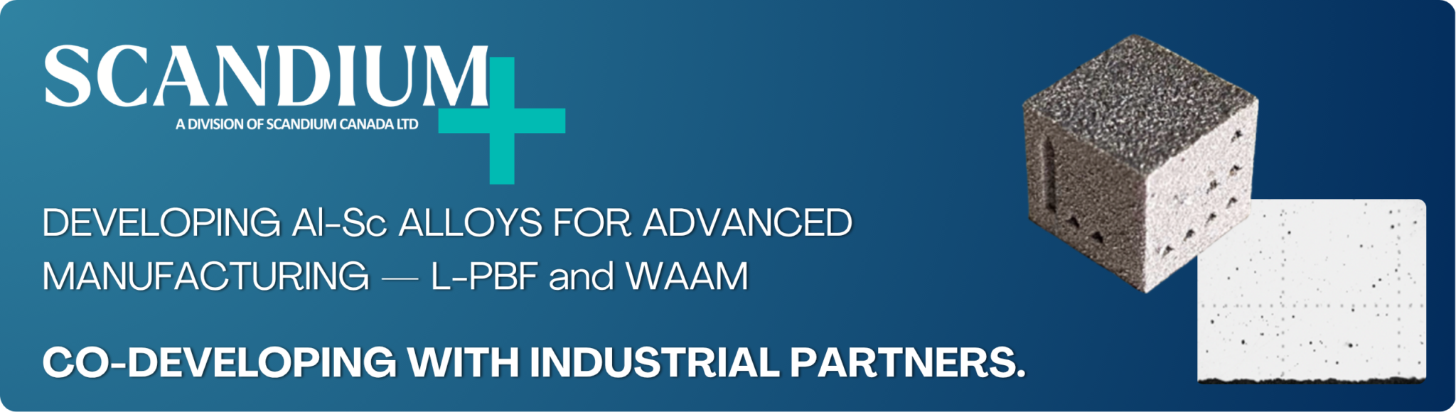 Scandium Canada has developed two aluminum-scandium (Al-Sc) alloys, AA7075 and A535, along with their powders, for use in advanced manufacturing (3D printing and Wire Additive Advanced Manufacturing).